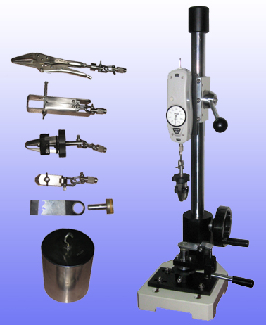 1. 拉力座 2. 推拉力计(30kg) 3.二爪钳 4. 三爪钳 5. 拉力钳 6. 底部织物夹具 7. 公钮测试夹具 8. 母钮测试夹具 |